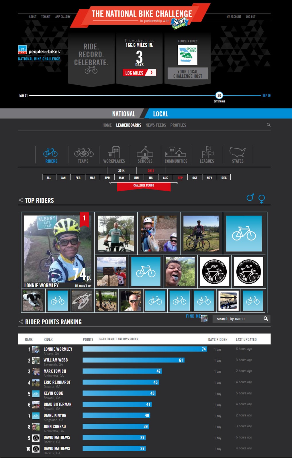 It is a rare occasion that I am number one in the standings, but as of 9/1/2015 at 11:40 AM I am in first place. I am sure as other rides post their mileage I will fall out of this spot, but for now I am enjoying it.